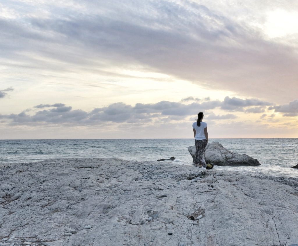 Immer wieder ist es der weite Ozean, der mich anzieht. Dieses monotone beruhigende Rauschen, dieses helle Leuchten am Morgen, wenn die Sonne am Horizont erscheint. Das tiefschwarze Meer bei Nacht, das man nur hört und riecht. Das Glitzern im Mondschein. Dieses Gefühl im Salzwasser, wenn der Körper federleicht wird, die verklebten Haare, den Geruch des Salzes, das auf der Haut trocknet. Dieses überbrodelnde Glück, in die Wellen zu rennen und einfach ins Wasser zu kippen. Alles keine Sache hier in Zypern. Das Meer ist omnipräsent. Schon nach Verlassen des Flughafens blitzt es von Zeit zu Zeit verführerisch azurblau durch die karge Landschaft.